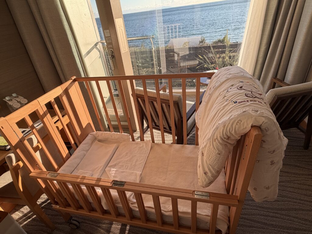 赤ちゃん用のベビーベッドは、事前に予約していたため、