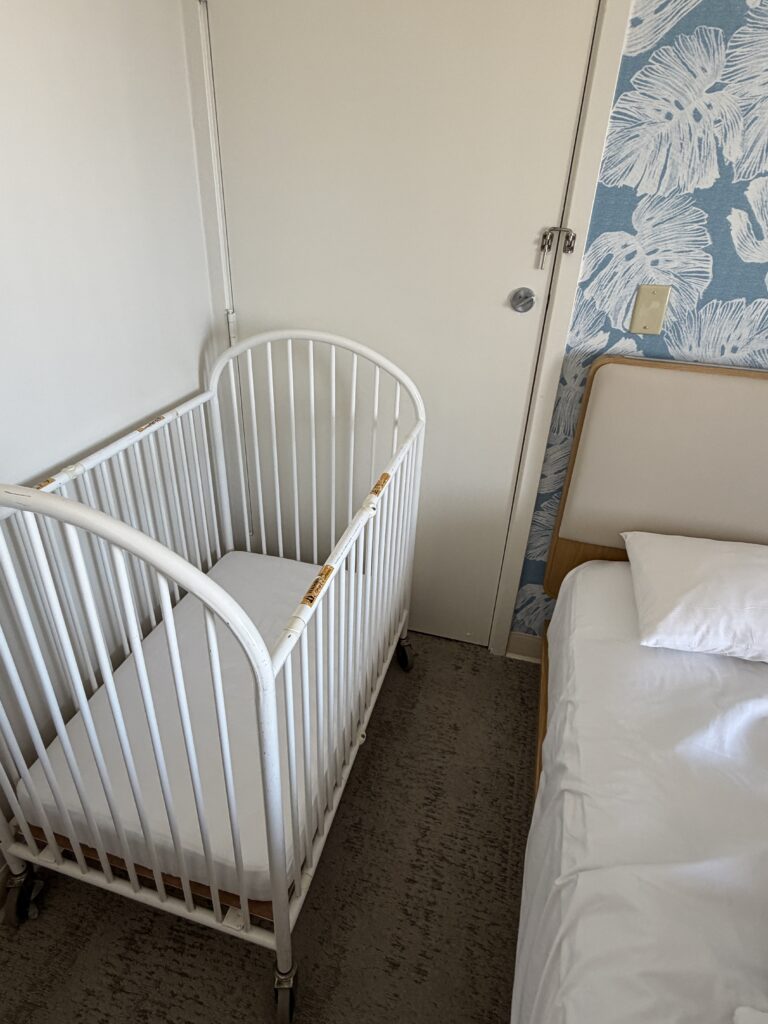 事前にお願いしていた ベビーベッド は、チェックイン時点ですでに設置されていました。